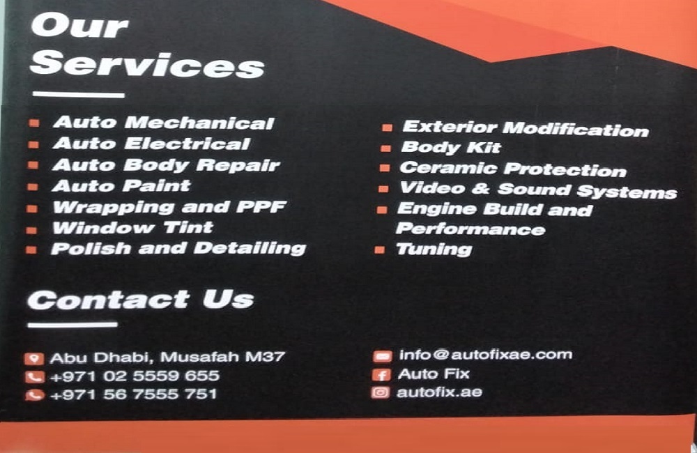 Auto Fix Auto Repair Workshop is located in Musaffah M/37 - Abu Dhabi-U.A.E. We provide professional auto repairs with a focus-friendly and skilled service that’s tailored to you and your car and we provide ourselves with a commitment to your safety and your budget from normal service, we take the utmost care to complete into the highest standard, we are synonymous throughout the areas as the place to visit for affordable prices and leading brand repairs. We service all makes and models of cars to the manufacturer’s standards and specifications, adopting complete dealership techniques. We do not compromise on safety and quality.