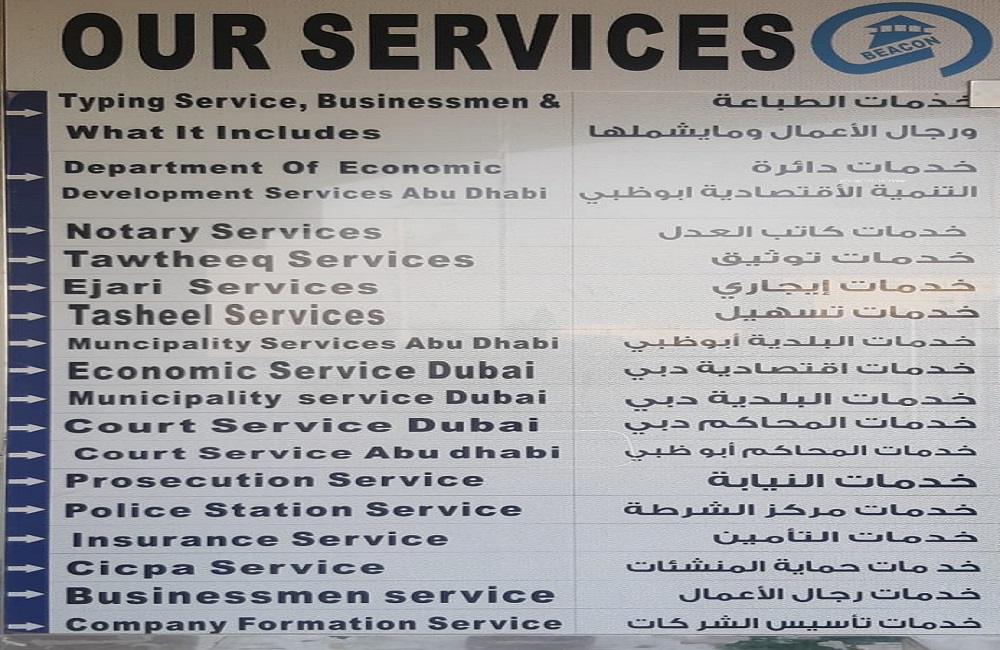 Beacon Typing Businessmen Services is located in Building No: 58, Musaffah M/37, Opp. Civil Defense - Abu Dhabi-U.A.E. Beacon Typing has grown exponentially due to its uncompromising commitment to quality and professionalism. Now we are a reliable and trustworthy provider of government services with a variety of different sectors providing all visa typing services. Our core values are trust, integrity, and confidentiality. We strive to deliver a cost-effective, professional, and speedy service in line with customer requirements. We have a dedicated team of professionals and experienced hands with in-depth knowledge of the laws and procedures relating to governmental transactions. We provide advice that works and ensure that an assignment achieves timely completion. We believe in long-term relationships and hence are committed to providing the best services to our Clients.