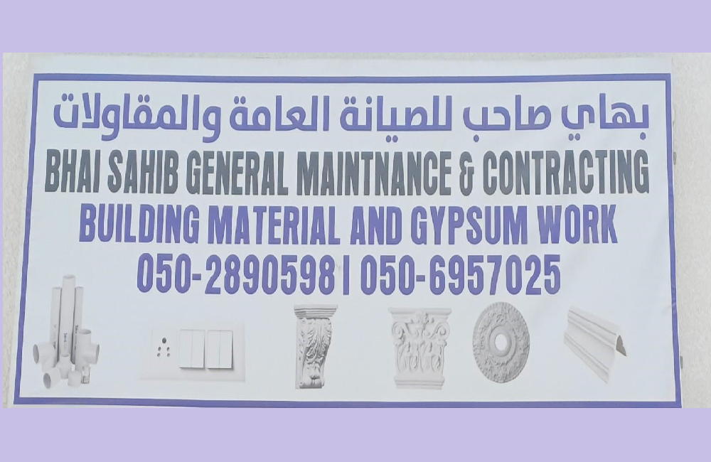 Bhai Sahib General Maintenance and Contracting is dedicated to delivering comprehensive maintenance and contracting solutions across various sectors, including residential, commercial, and industrial. With a commitment to excellence, we strive to exceed client expectations through meticulous attention to detail, timely project completion, and adherence to the highest industry standards. Our team of skilled professionals brings extensive experience and expertise to every project, ensuring quality craftsmanship and reliable service. At Bhai Sahib, we prioritize customer satisfaction and aim to build long-term relationships based on trust, integrity, and transparency. Discover how our dedication to excellence and customer-centric approach can benefit your maintenance and contracting needs.