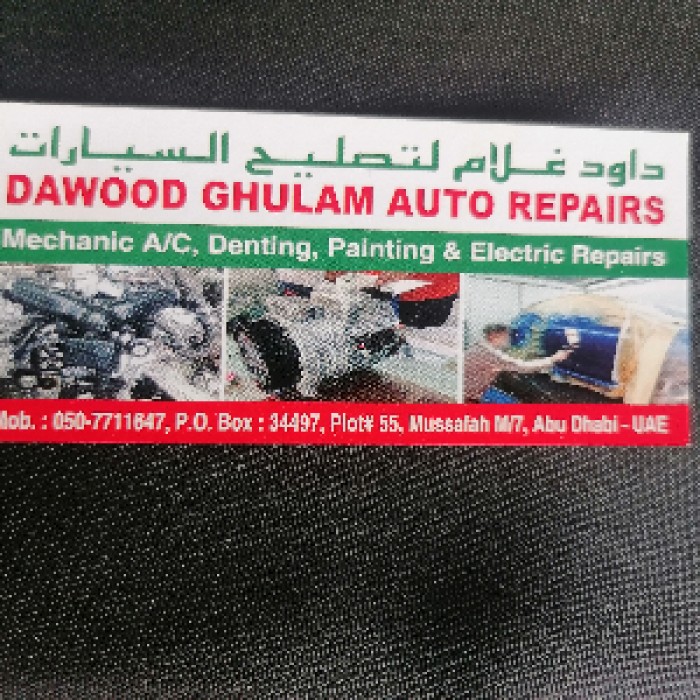 Dawood Ghulam Auto Repair Workshop L.L.C is located in Mussafah M/7- Abu Dhabi-U.A.E. We provide professional car repairs with a focus on friendly and skilled service that’s tailored to you and your car and we provide ourselves with a commitment to your safety and your budget from normal service, we take the utmost care to complete into the highest standard, we are synonymous throughout the areas as the place to visit for affordable prices and leading brand repairs. We service all makes and models of cars to the manufacturer’s standards and specifications, adopting complete dealership techniques. We do not compromise on safety and quality. Our mechanics will do what it takes to ensure your vehicle is safe. We use top-quality replacement auto parts and the best tools to provide this service to you