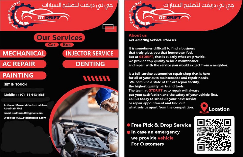 GT Drift Auto Repair Workshop is located in Musaffah M/14 - Abu Dhabi-U.A.E. We provide professional auto repairs with a focus-friendly and skilled service that’s tailored to you and your car and we provide ourselves with a commitment to your safety and your budget from normal service, we take care to complete into the highest standard, we are synonymous throughout the areas as the place to visit for affordable prices and leading brand repairs. We service all makes and models of cars to the manufacturer’s standards and specifications, adopting complete dealership techniques. We do not compromise on safety and quality.
