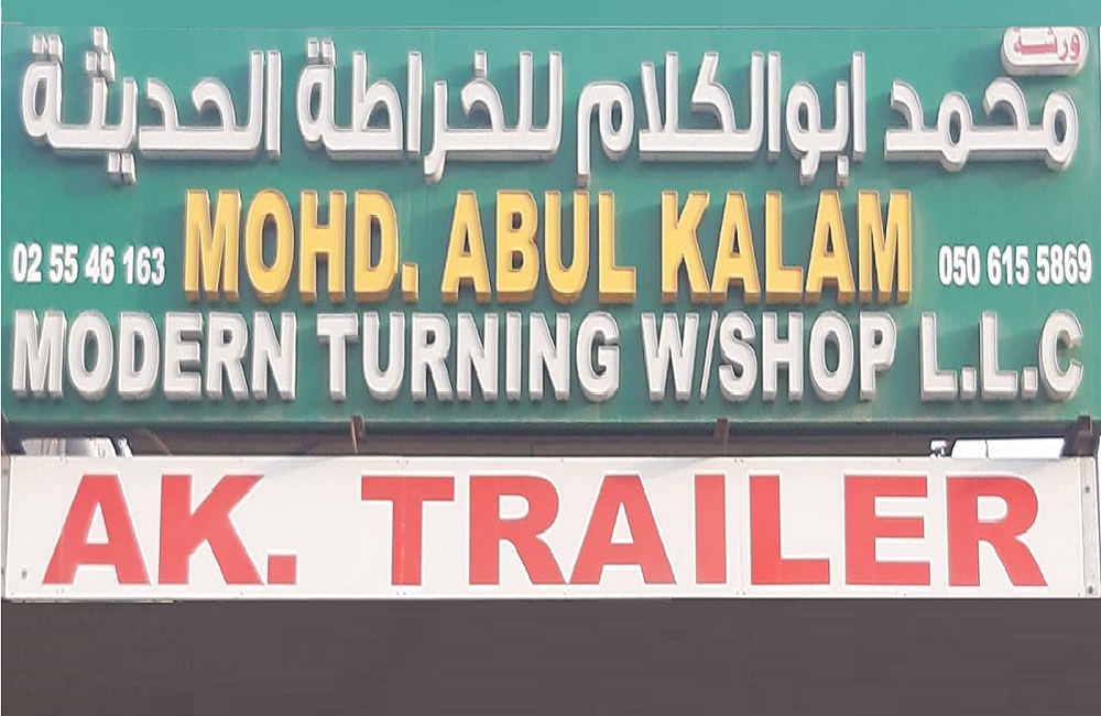 Mohd. Abul Kalam Modern Turning Workshop L.L.C was started in 2015 and located at Mussafah M/7-Abu Dhabi-U.A.E. After gaining experience in the field of Turning, Electrical gas Welding, Milling, Aluminium Welding, Board Trailer Making & Fabrication, etc. We have a dynamic team to achieve the best quality.