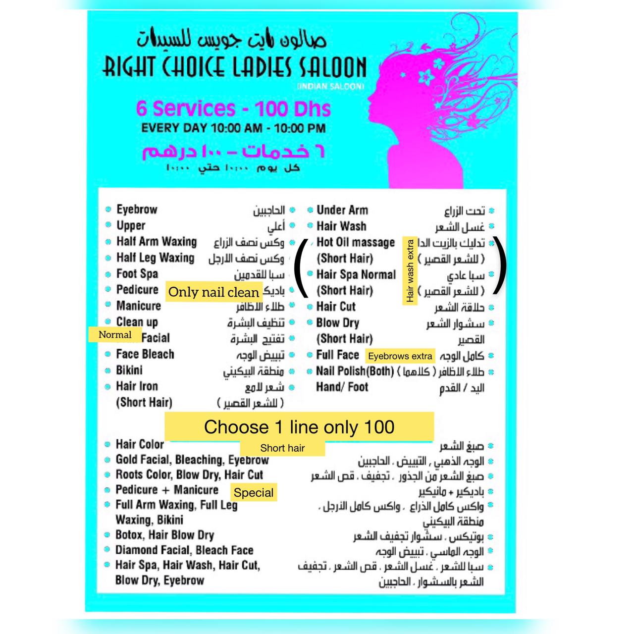 Right Choice Ladies Saloon started in 2017. We offer the best we can to our valued clients while using the best available products. We believe in continuous professional development and our staff is trained about today’s trends in the beauty industry. We have sincere and dedicated staff, ready to serve the wellness needs of our clients and our feedback is they surpass their expectations.