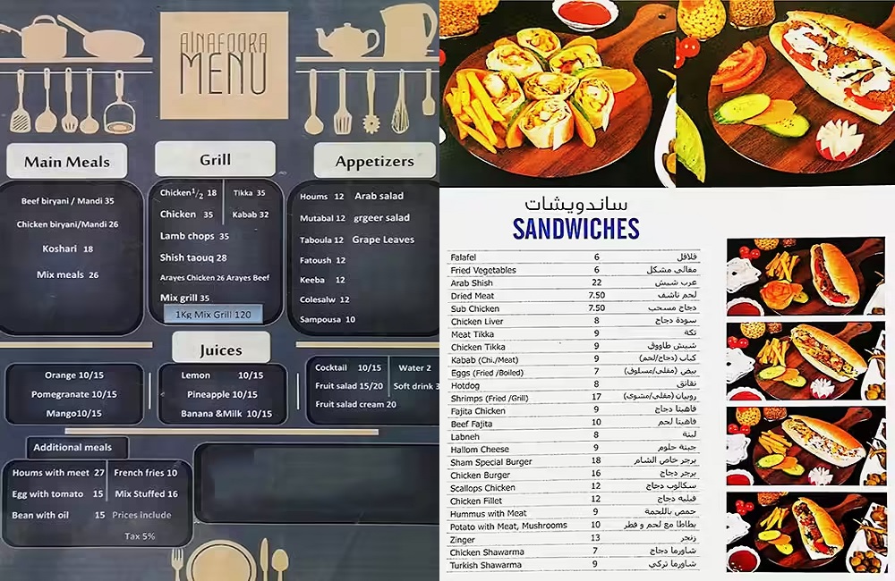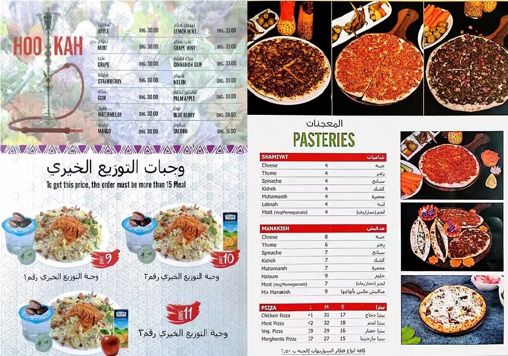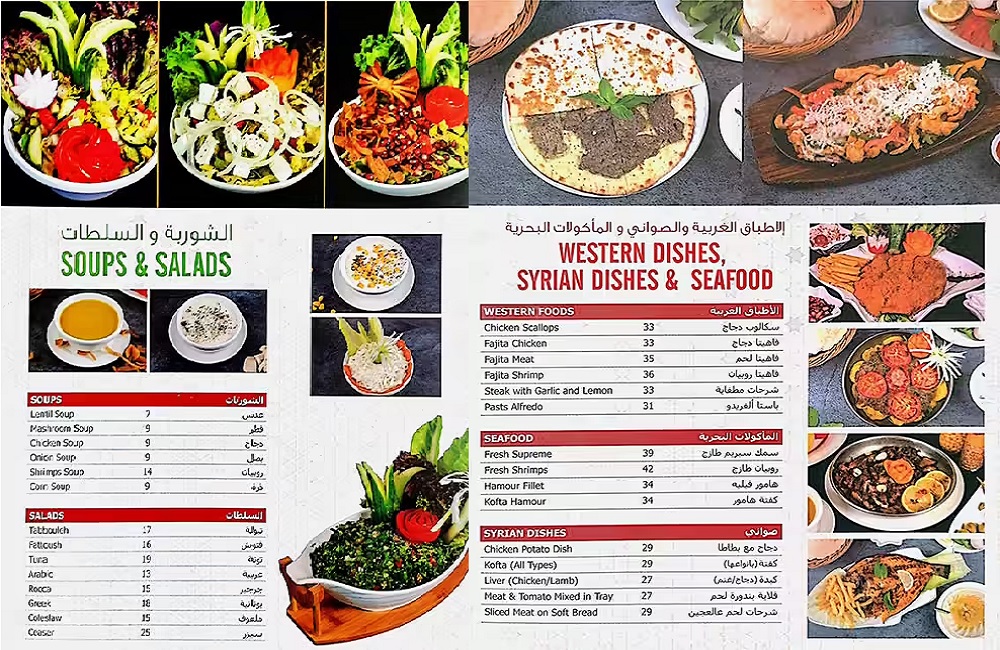 ★ Hookah, Pasteries, Daily Cooking Meals, Sandwiches, Western & Syrian Dishes, Seafood, Barbeque, Hot Appetizers And Breakfast Dishes, Cold Appetizers, Soups & Salad, etc available★