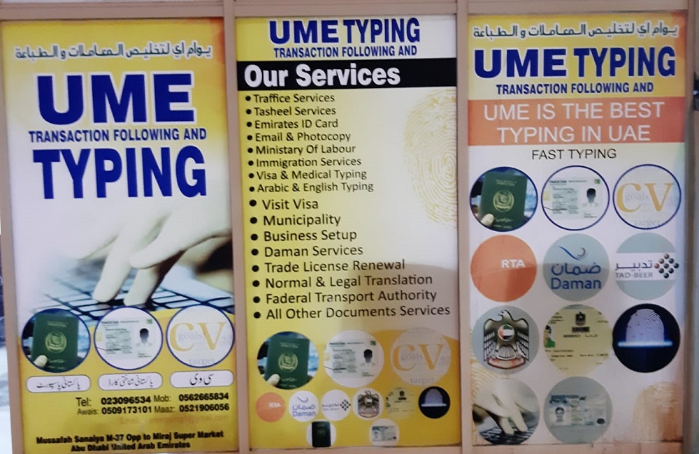 UME Transaction Following And Typing is located in Mussafah M/37-Abu Dhabi-U.A.E. Typing centers in UAE are well-equipped to offer basic typing training to interested individuals looking for secretarial jobs in offices. Basic typing skill is often required for all types of text or word-processing-based jobs therefore typing centers are essentially producing skilled typists at reasonable rates. The courses offered at these typing centers are designed keeping in mind the requirement of local as well as global businesses. In addition to English, these typing centers offer courses on Arabic typing which is often required by local companies. No matter what your skill sets are, you can get yourself enrolled and trained in these typing centers.